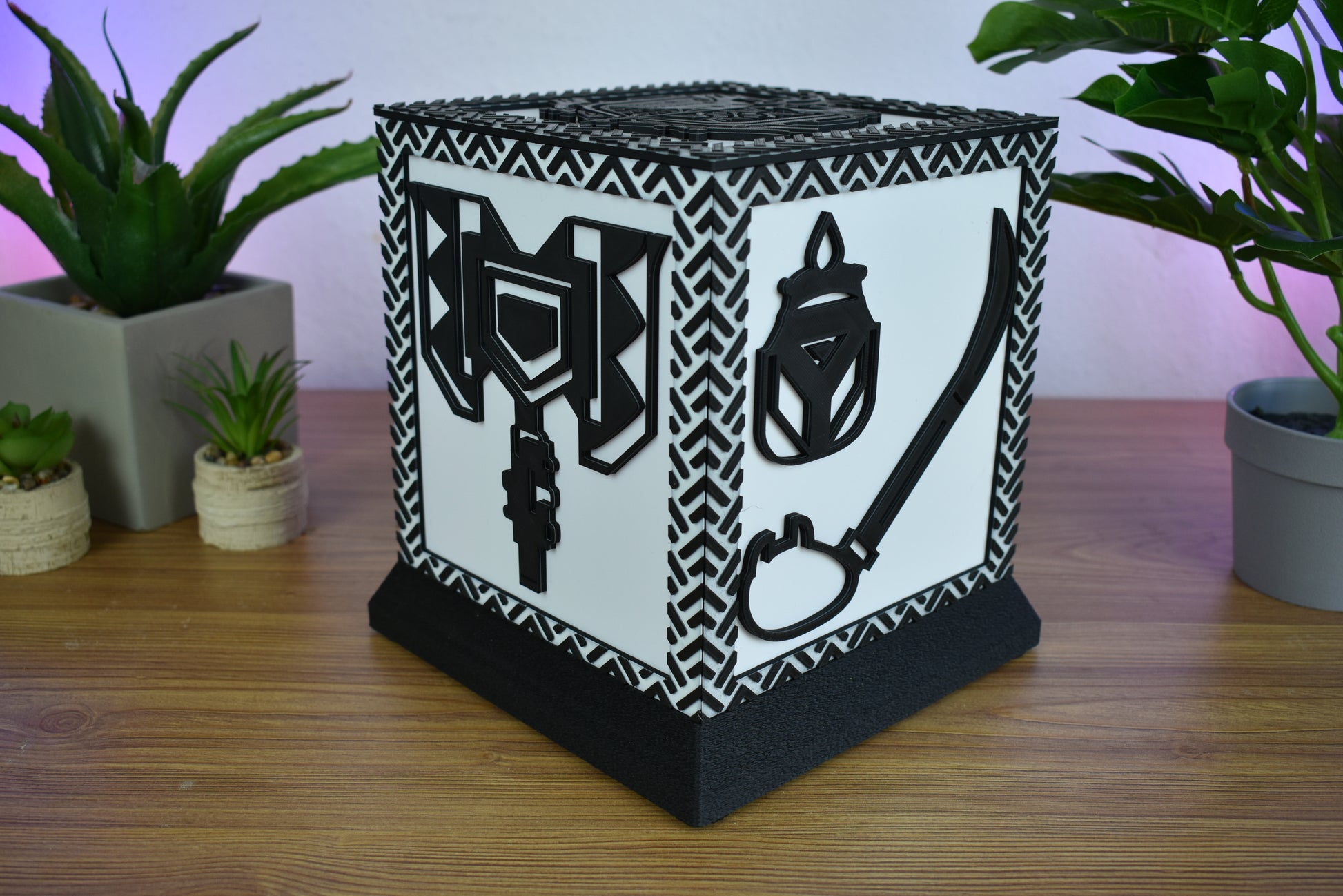 Der MODLIGHT-Cube vereint minimalistisches Design mit maximaler Flexibilität. Fünf austauschbare Motivseiten und eine solide Base machen ihn zum Herzstück eines jeden Raumes. Ob als Eyecatcher im Wohnzimmer, Gaming-Setup oder im Office – der Cube beleuchtet das worauf du Bock hast.